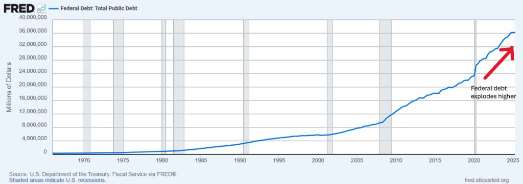 At this point, a reasonable question arises: why can’t this cycle continue indefinitely? Many have postulated that as long as the U.S. can borrow money in its own currency (Modern Monetary Theory), this process can continue indefinitely. Yet, as you will see, this logic is entirely flawed.